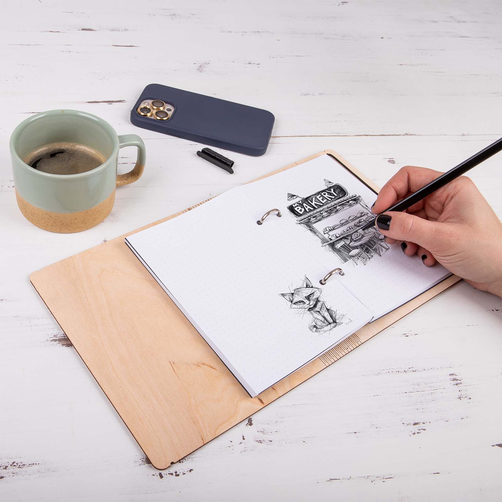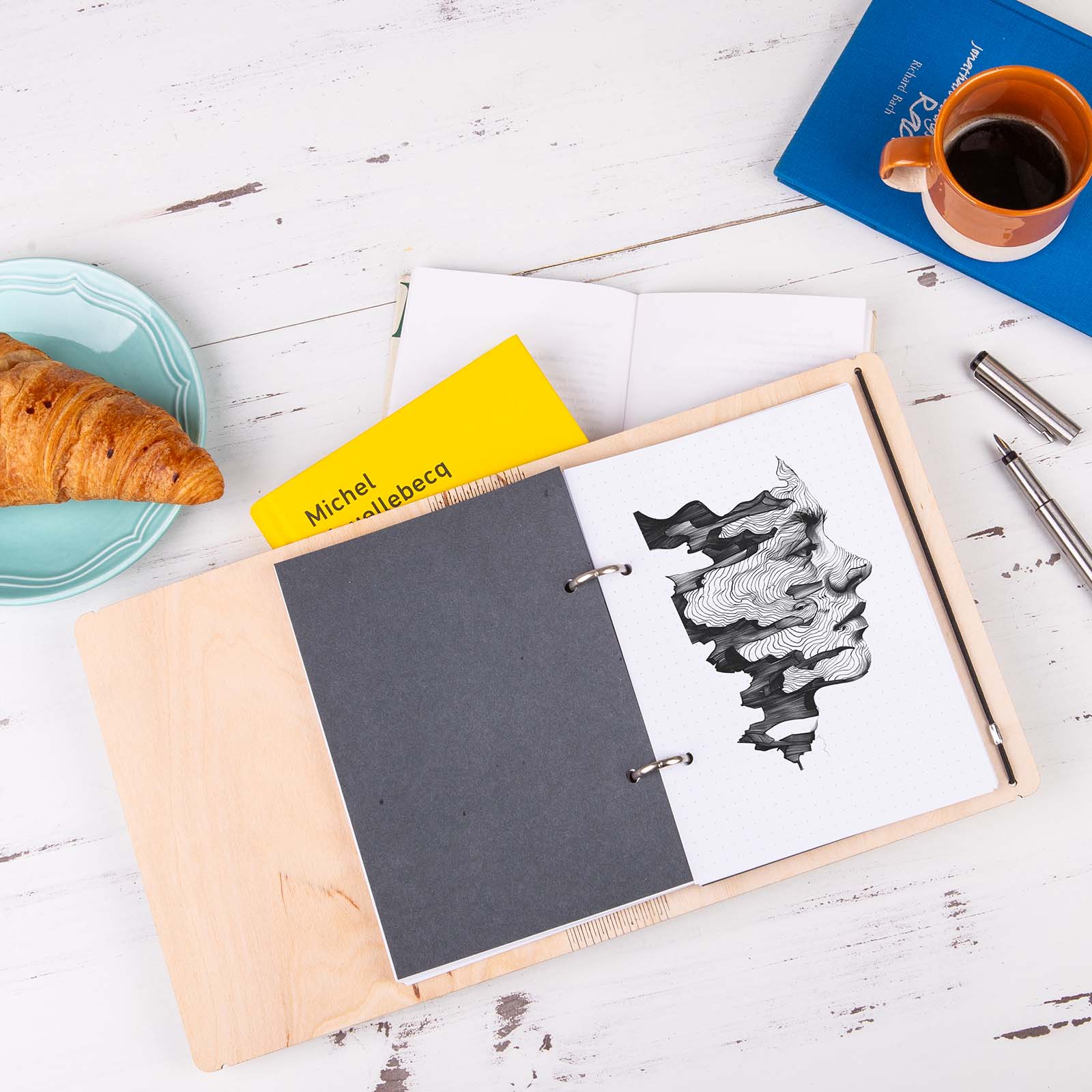 Užrašų knygelė su mediniais viršeliais ir asmeniniu motyvu yra stilingas aksesuaras, kuris savyje sujungia gamtos eleganciją ir didelį praktiškumą. Kokybiškai apdoroti mediniai viršeliai suteikia originalią išvaizdą, o patvarus vidinis blokas siūlo pakankamai erdvės jūsų užrašams, idėjoms ar piešiniams.
