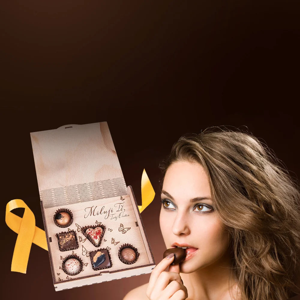 Kokybiški produktai medinėje dėžutėje su personalizuotu jūsų dedikacijos graviravimu.